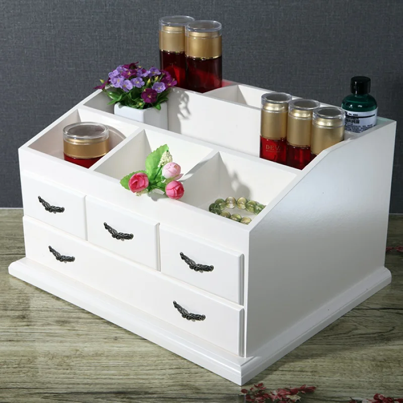 - Wooden Cosmetics Store Desktop Skin Care Products Shelf Dresser Drawer Storage Finishing Boxes Tabletop Accessories