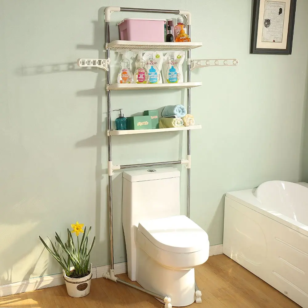 - Over The Rack Stainless Steel Toilet Cabinet Shelving Kitchen Washing Machine Rack Bathroom Space Saver Shelf Organizer Holder