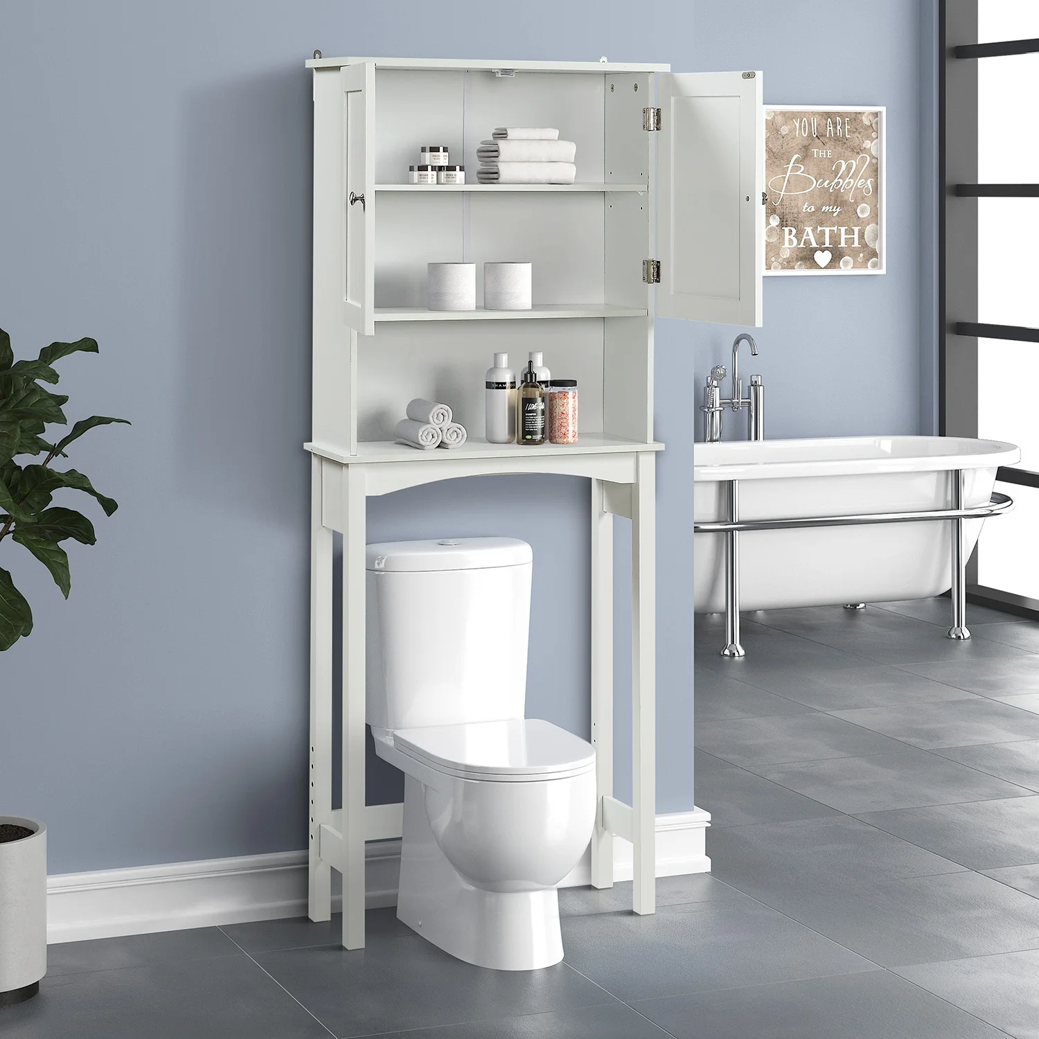 - Home Over-The-Toilet Bathroom Storage Space Saver with Adjustable Shelf Collect Cabinet(White)