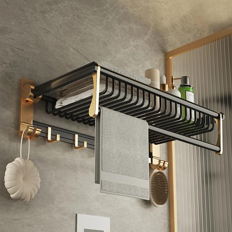 - Foldable Wall Shelf Towel Toothbrush Holder Hair Dryer Fashion Bathroom Organizer Storage Over Toilet Almacenaje Household Items