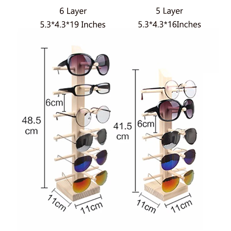 - 2~6 Layers Wood Sunglass Display Rack Shelf Glalsses Storage Eyeglasses Show Stand Jewelry Holder Multi Pairs Glasses Showcases