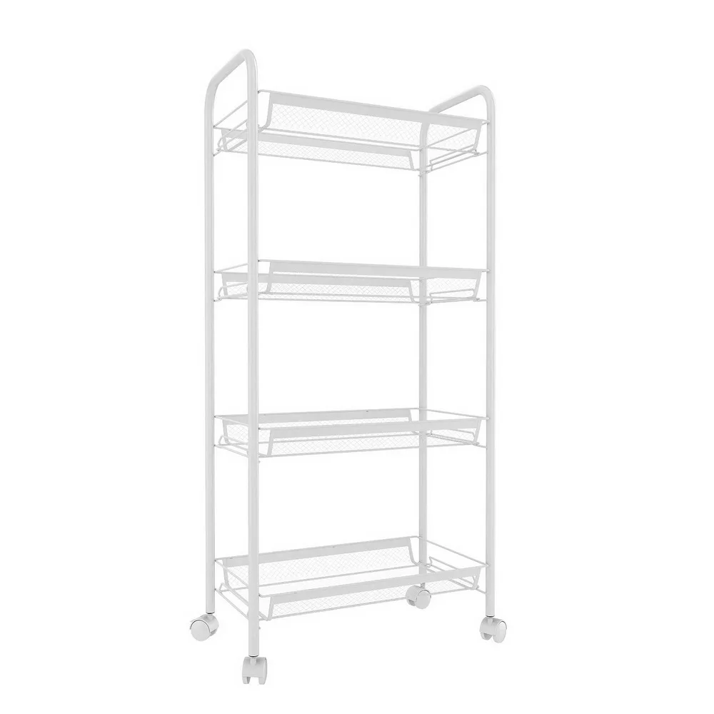 - Kitchen Rolling Cart Rack Removable Utility Trolley Honeycomb Net Organizer Shelves 4-Tier Shelving Rack with Hook - US Stock