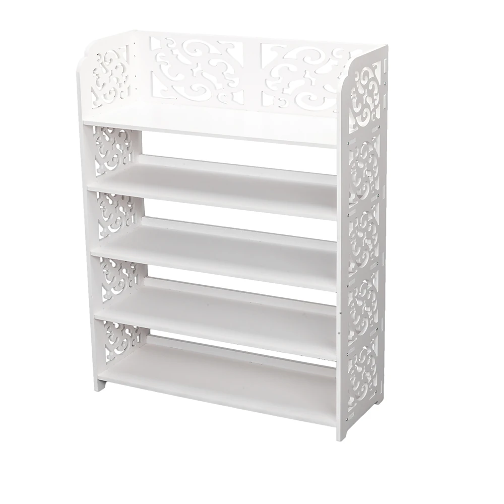 - 5-Tiers Carved Shoe Rack Wood-Plastic Board Storage Shelf Waterproof Damp Proof White 62x24x80CM[US-Stock]