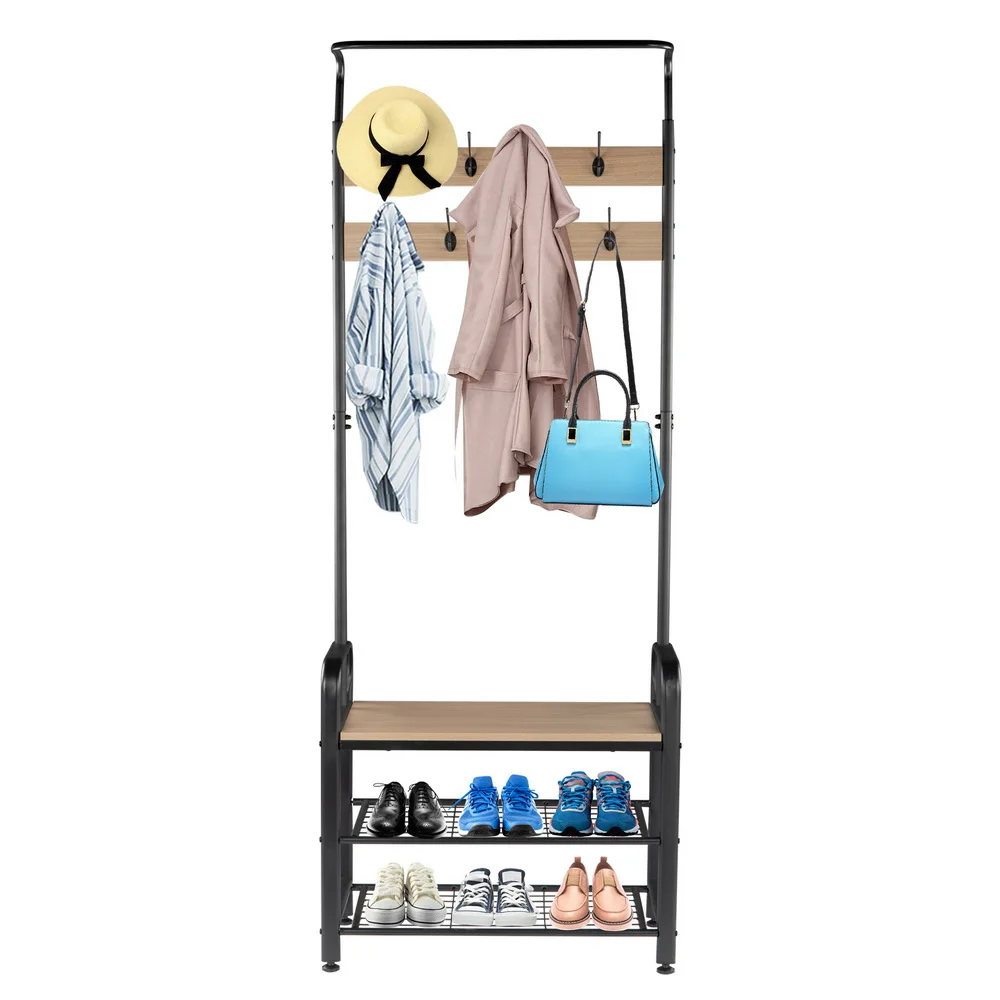 - Industrial Coat Rack Shoe Bench Hall Tree Entryway Storage Shelf 3 in 1 Design Gray US Warehouse