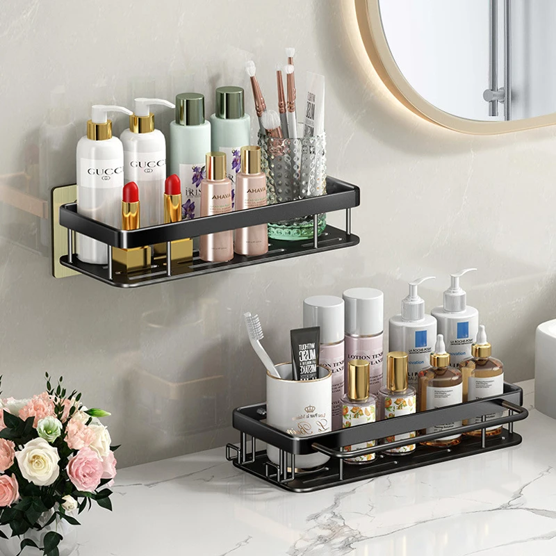 - Double Nail-free Bathroom Shelf Aluminum Square Basket Black/White/Gold Shampoo Shelf Kitchen Storage Rack Toilet Shelf Kmmoun