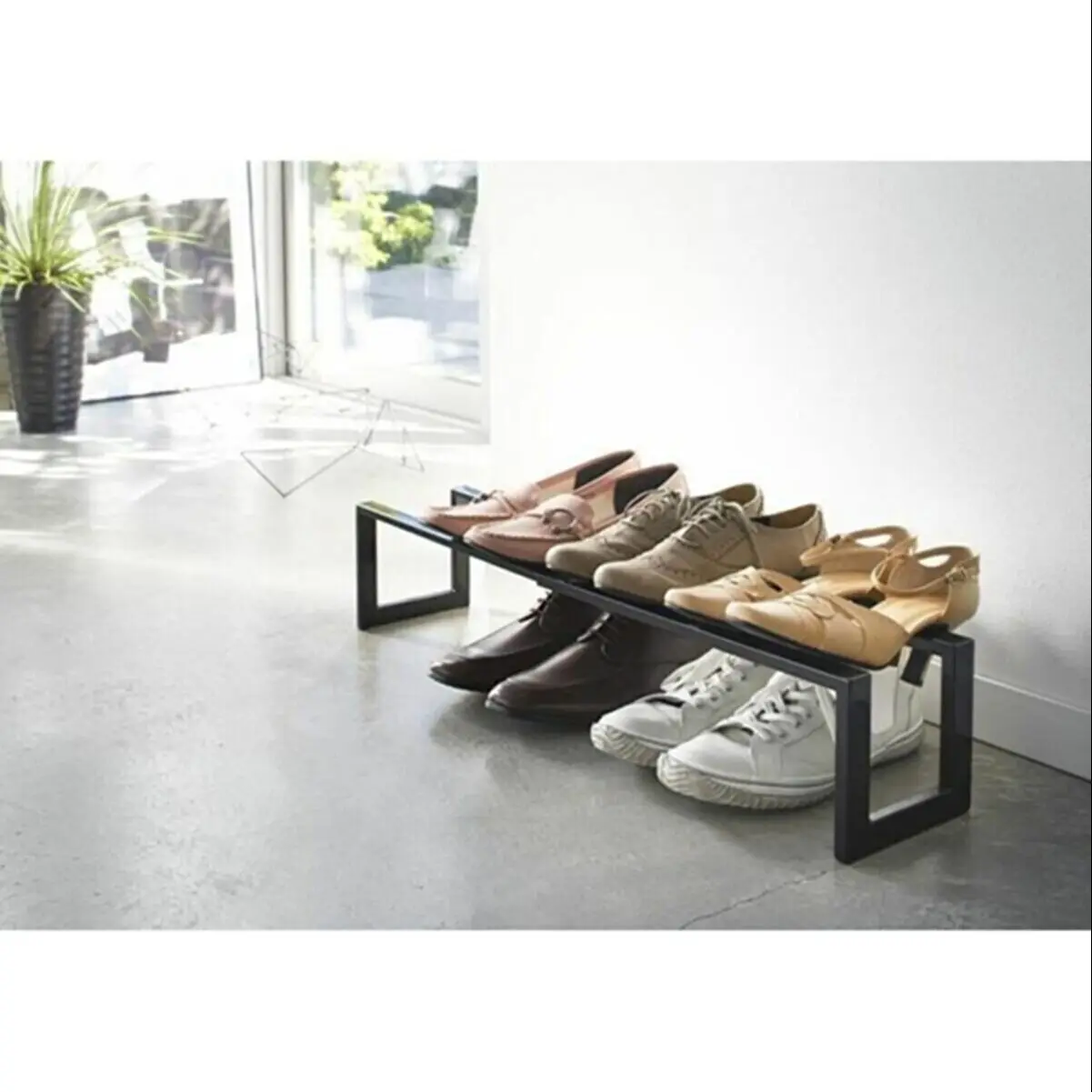 - Metal Expanding Shoe Rack Slippers Organizer Decorative Stand Black White Shelf Hanger Minimal Storage Home Room Corridor