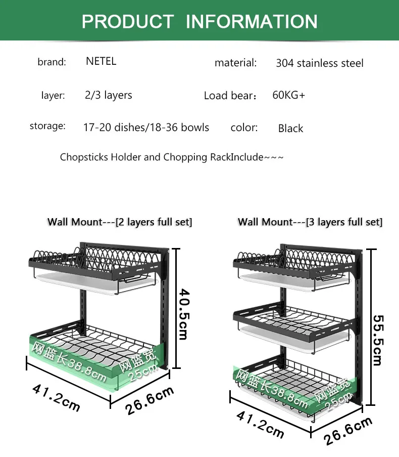 - NETEL Wall Shelf Organizer Storage Shelf ,Kitchen Dish Rack Hanging Drying , 2/3 Tier Bowl Holder with Drain Tray