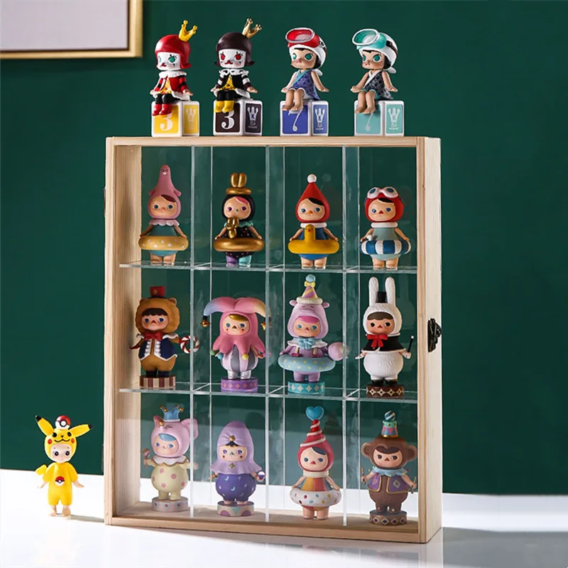 - Blind Box Toy Figures Display Case Acrylic and Wood Storage Rack Doll Clay Figurine Organizer Stand Toy Mini Car Model Shelf