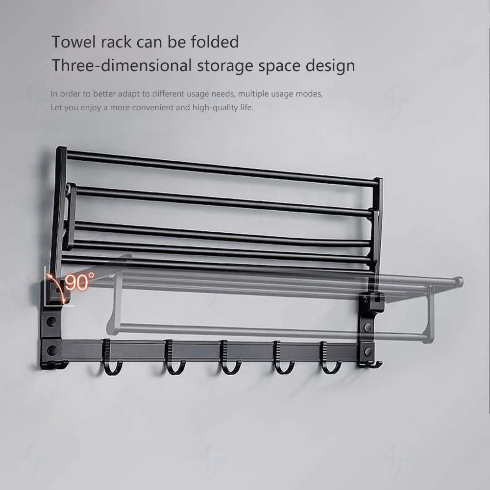 - Towel Rack Space Aluminum Shower Holder Bathroom Accessories Folding Wall Organizer Hanger Black Storage Shelf