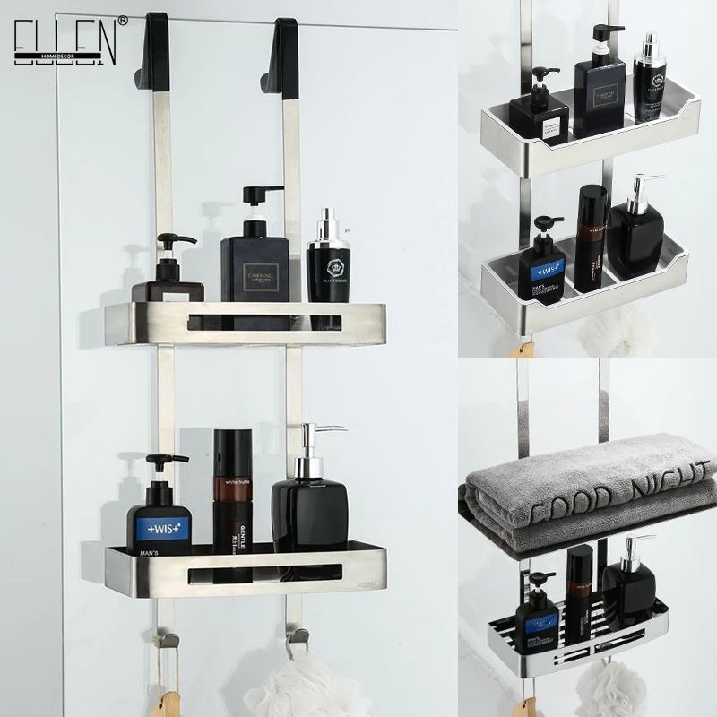 - Bathroom Shower Shelves 2 Layer Shampoo Holder Bath Storage Towel Hanging Bathroom Stainless Steel Polished ELM330