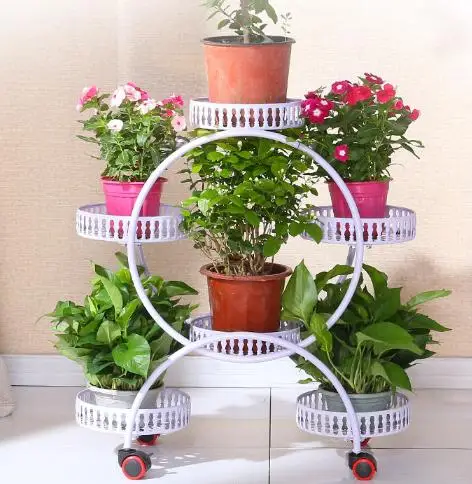 - Wrought Iron Multi-Layer Flower Shelf Indoor Space Green Bar Balcony Living Room Removable Wheeled Flower Pot Rack