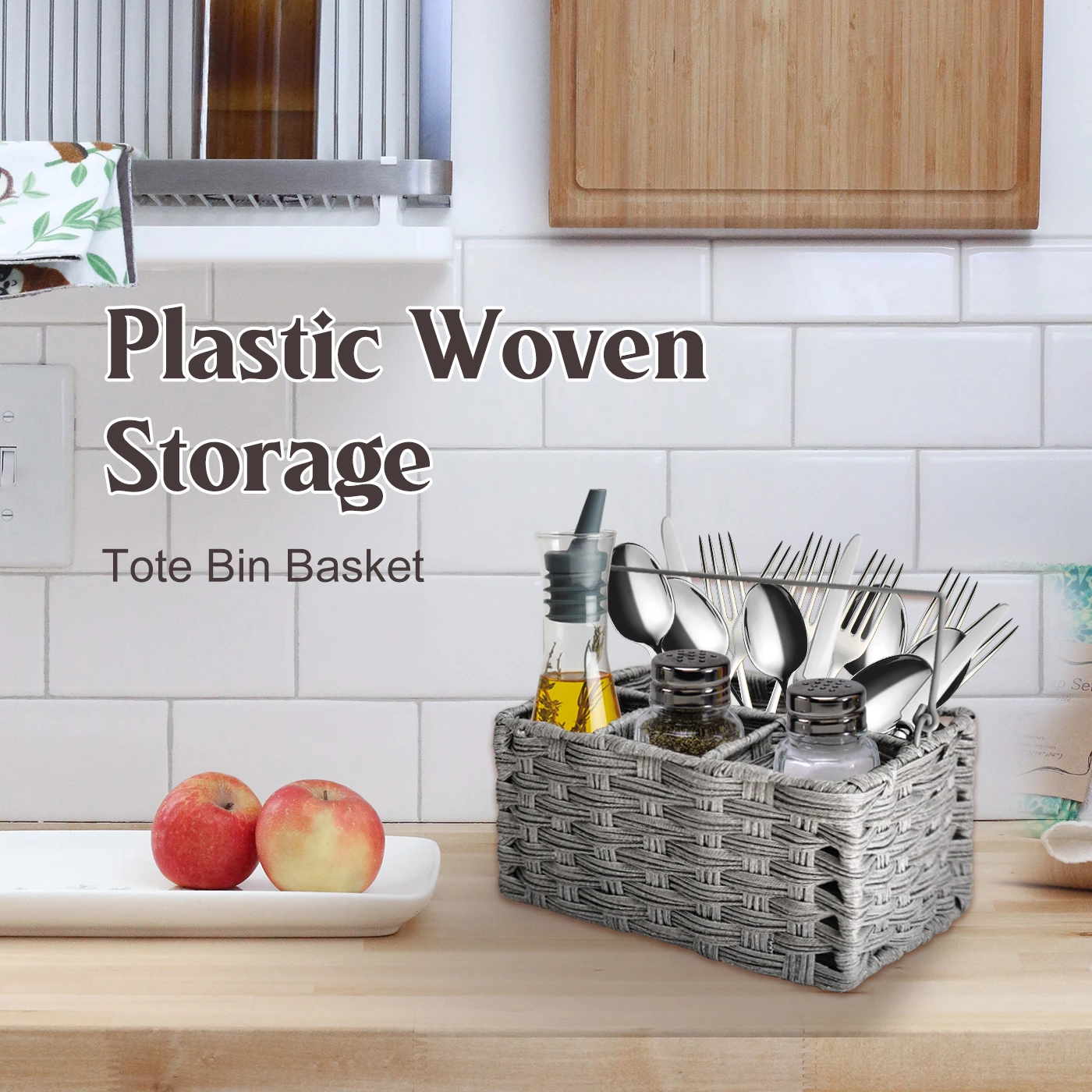 - Woven Ombre Farmhouse Kitchen Pantry Food Storage Organizer Basket Bin Cabinets Cupboards Shelves Utensils Holder Cutlery Tray