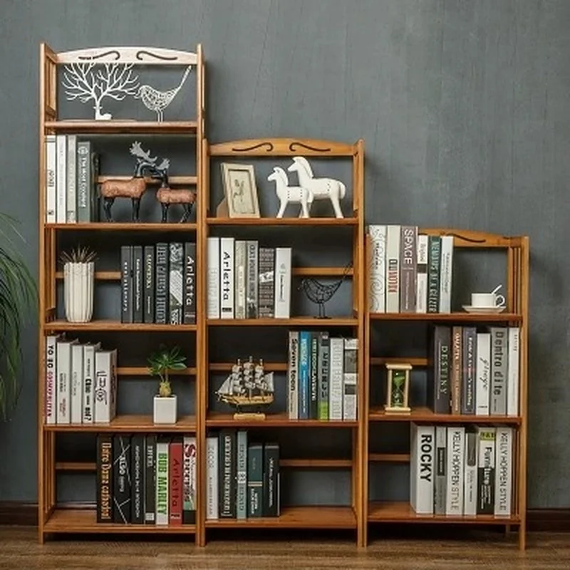 - Solid Wood Bookshelf Elegant Book Display Rack Standing Living Room Shelves Kitchen Storage Book Magazine Organizer CD Holder