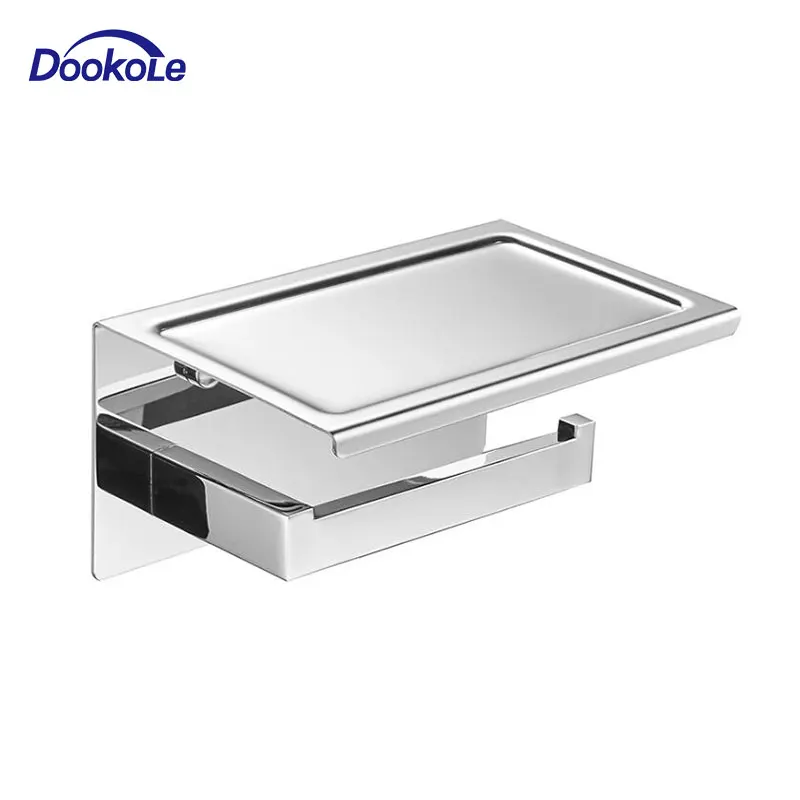 - DOOKOLE Bathroom Paper Tissue Holder with Phone Shelf Wall Mount, Toilet Paper Holder with Mobile Phone Storage Shelf (Chrome)