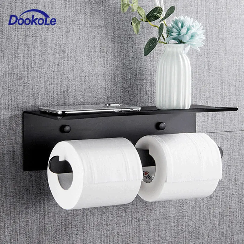 - DOOKOLE Bathroom Double Roll Tissue Holder, Toilet Paper Holder with Shelf , Toilet Paper Storage (Matte Black)