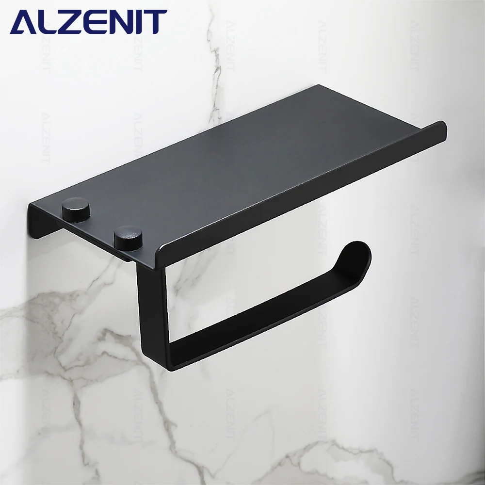 - Toilet Paper Holder Wall Mount WC Phone Tray Matte Black Shower Storage Aluminum Towel Roll Shelf Organizer Bathroom Accessories