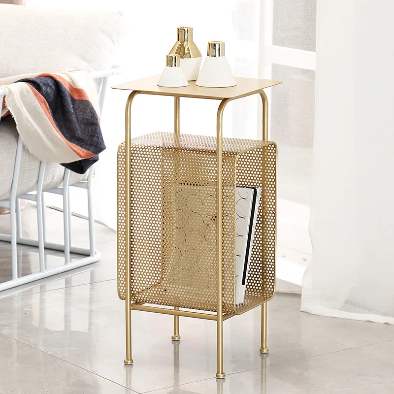 - Fashion Golden Metal Bedside Shelf Multi-layer Steel Wire Coffee Desk Magazine Rack Fashion Design Book Storage Organizer