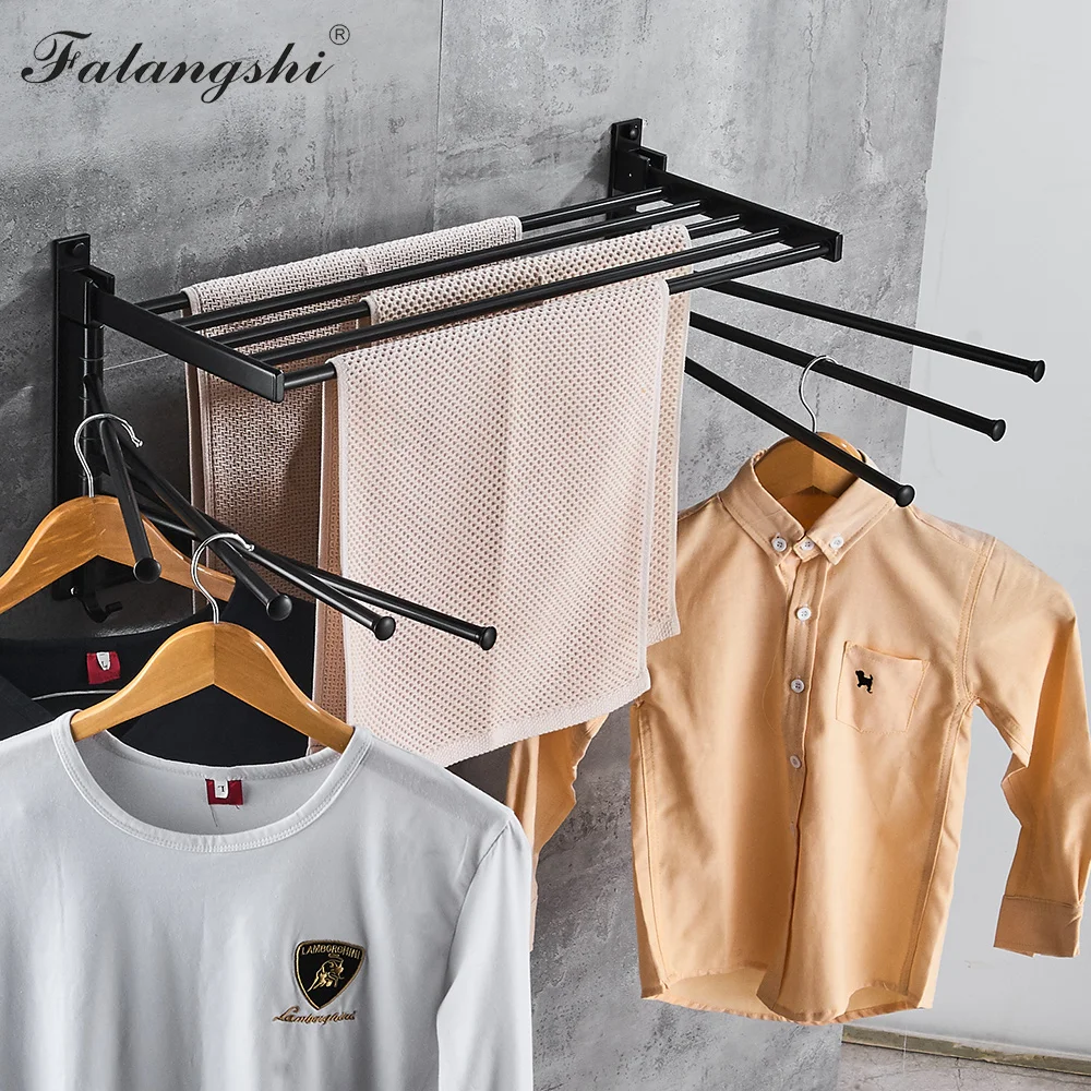 - 60cm Black Towel Rack Foldable Towel Bar Swivel Rotation Clothes Hanger Wall Mounted Aluminum Bathroom Storage Shelf WB8751