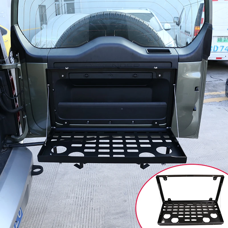 - For Land Rover Defender 2020-22 Tailgate Table Rear Door Cargo Luggage Carrier Foldable Shelf Storage Rack Alloy Car Accessories