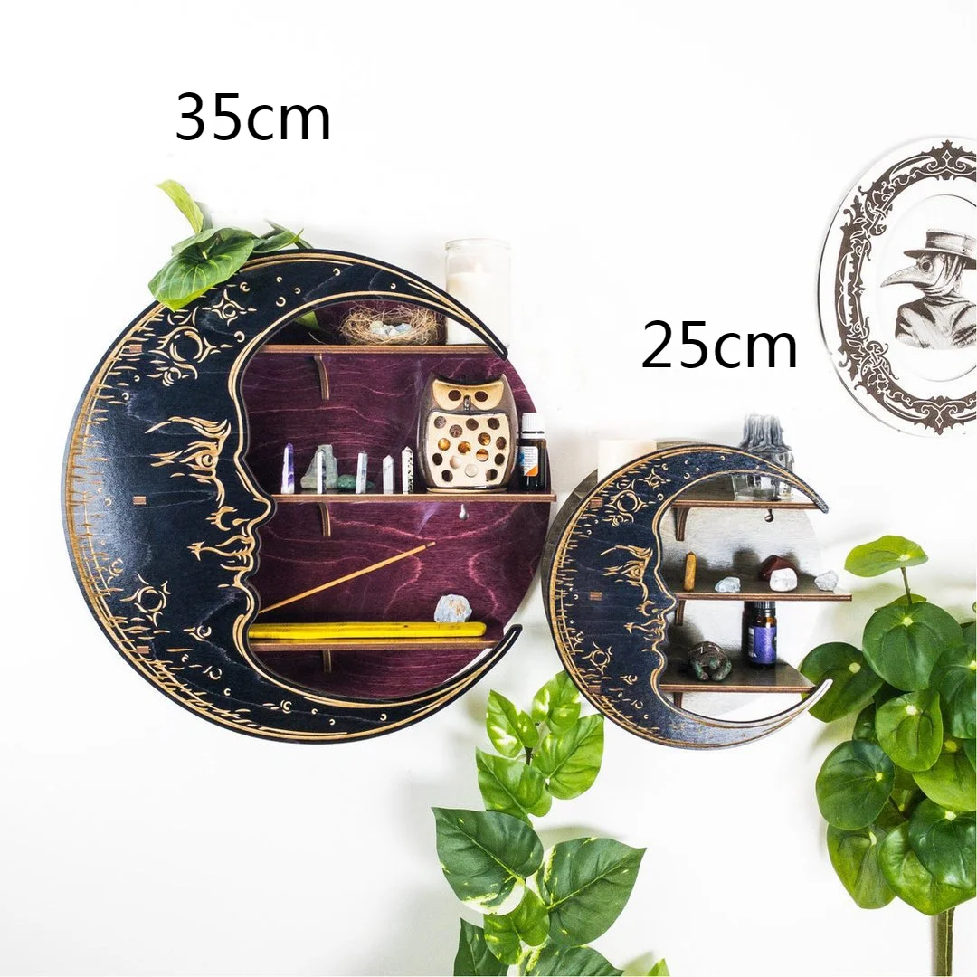 - 35cm Big Wall Hanging Storage Rack Bedroom Home Decor Crystal Essential Oil Nursery Wooden Moon Shelf Room Rustic Display Rack