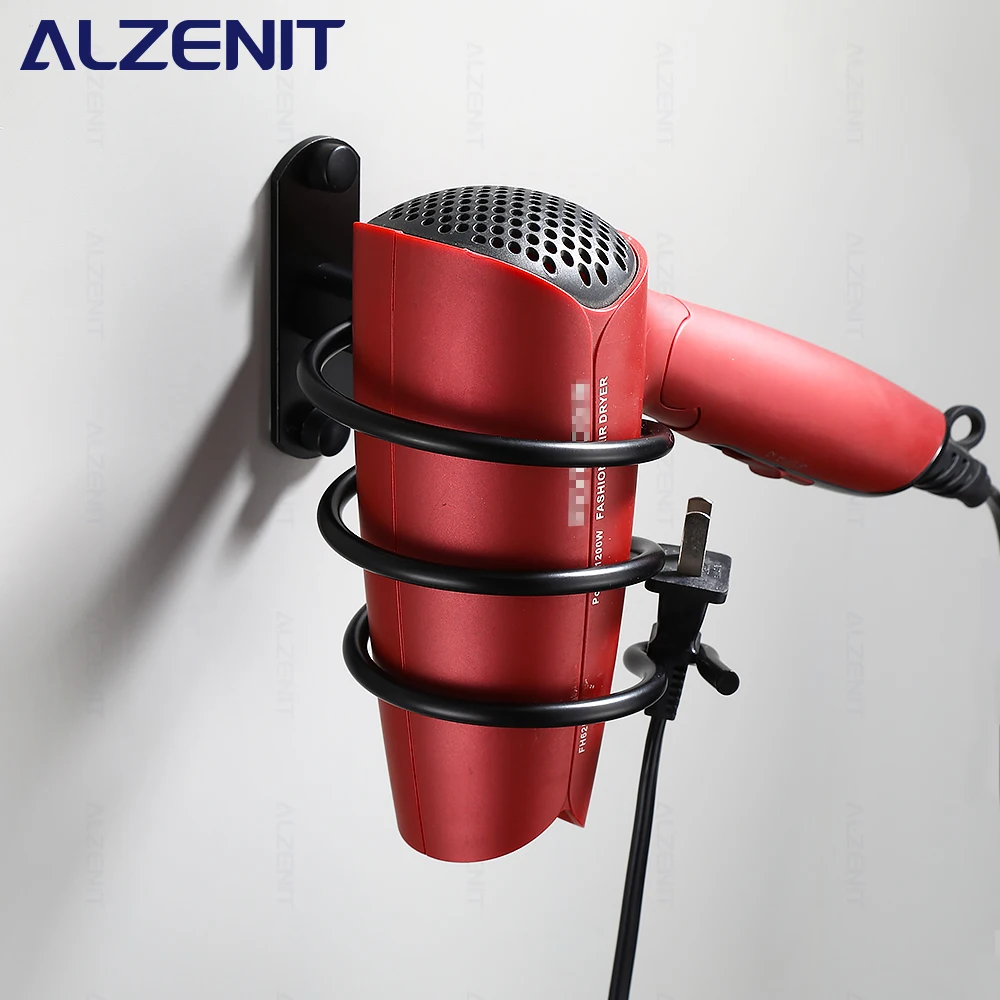 - Black Hair Dryer Holder Novelty Households Rack Hair Blow Dryer Rack Bathroom Shelf Space Aluminum Wall Mounted Storage